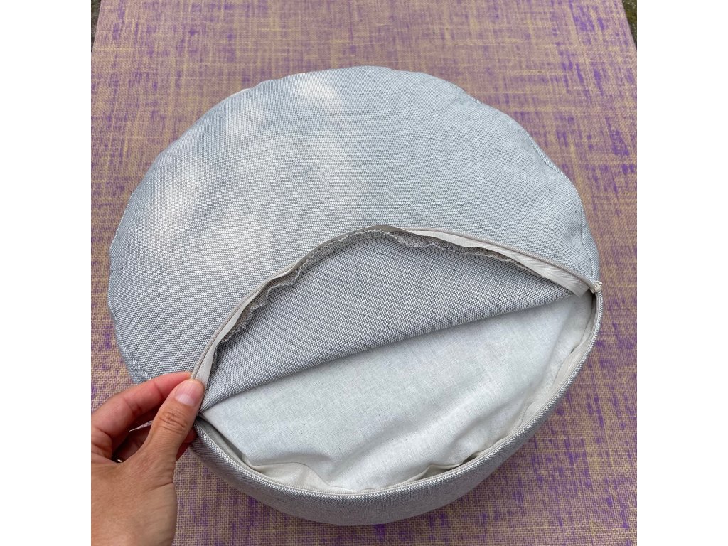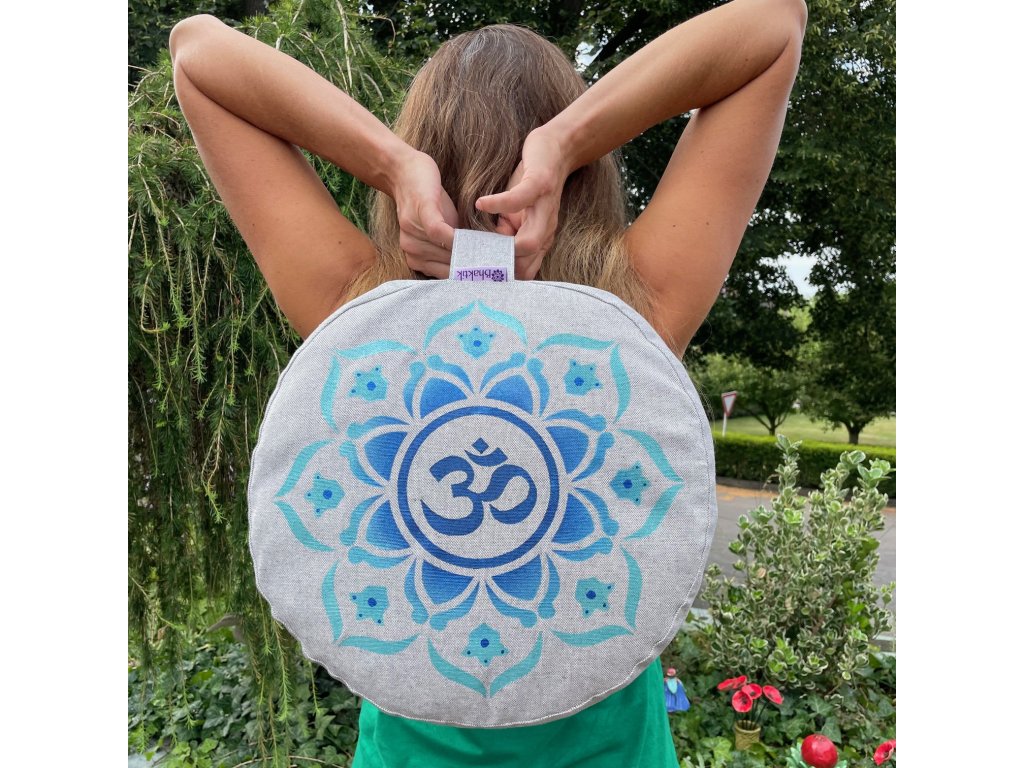 Bhaktik meditační podsedák s ručním potiskem. Meditační podsedák je určen k meditaci nebo na sezení v tureckém sedu, kde vylepšuje a podporuje polohu zad a boků. Je plněn pohankovými slupkami a má poutko pro nošení v ruce. Vnější polštář má zip, což umožňuje snadné svlékání a praní polštáře. Vnitřní polštář u vysokých polštářů se uzavírá suchým zipem, což umožňuje odebírání a doplňování pohankových slupek. Vnitřní materiál 100% bavlna, vnější obal 90% bavlna a 10% polyester. Prát na 30 stupňů, rubní stranou nahoru. Rozměr vysokého polštáře 34 x 15cm, hmotnost cca 2.5kg. Rozměr nízkého polštáře 34 x 10cm, hmotnost cca 1.5kg.