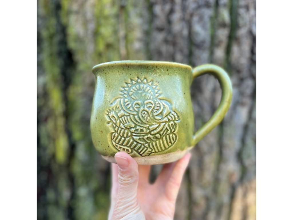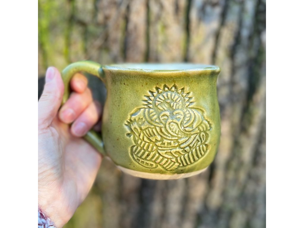 Ručně modelovaný keramický hrnek je modelovaný z točířské hlíny. Na hrnek byla použita glazura pro užitkové účely. Obsah hrnku je cca 450ml.