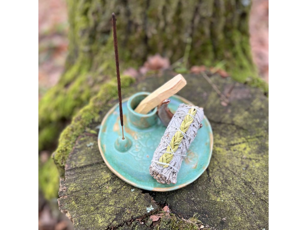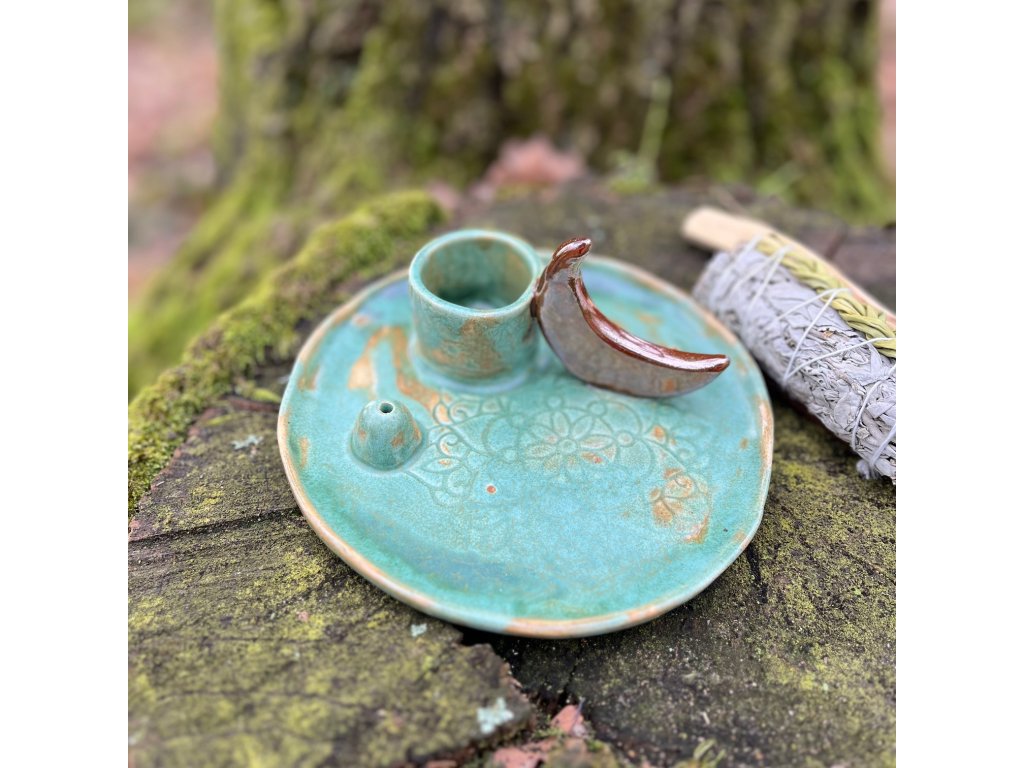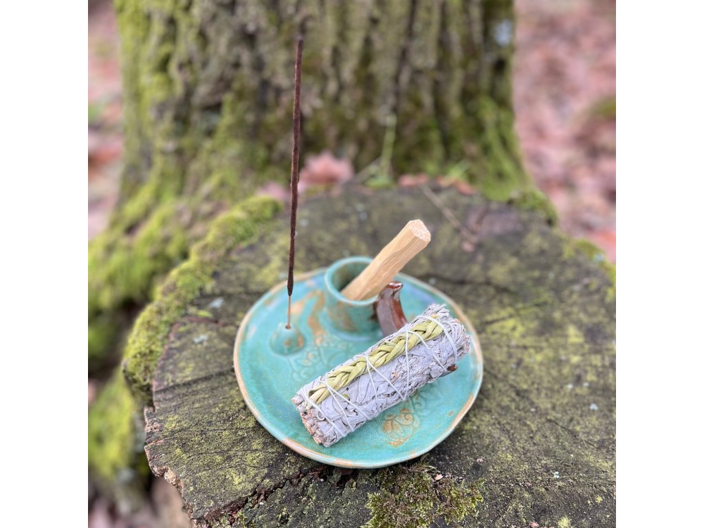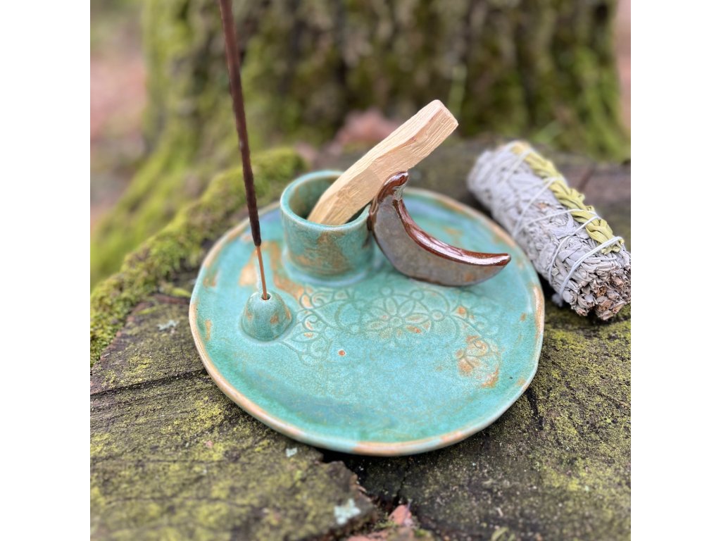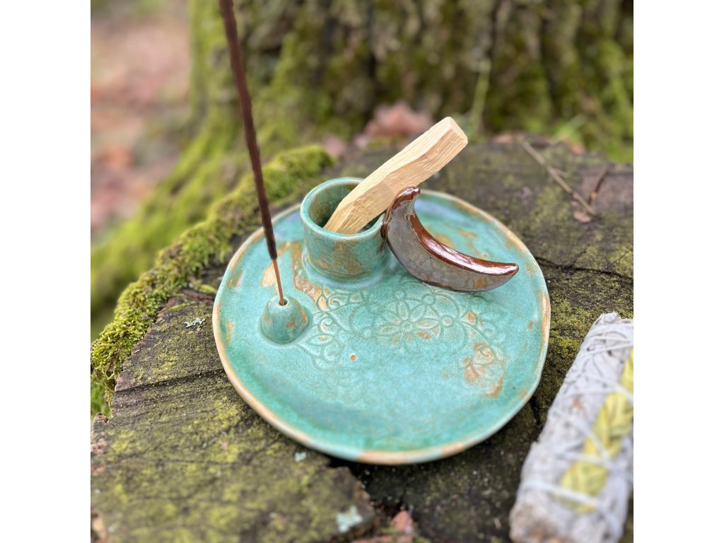 Stojánek na vykuřovadla je ručně modelován z točířské hlíny. Průměr stojánku cca 16cm.