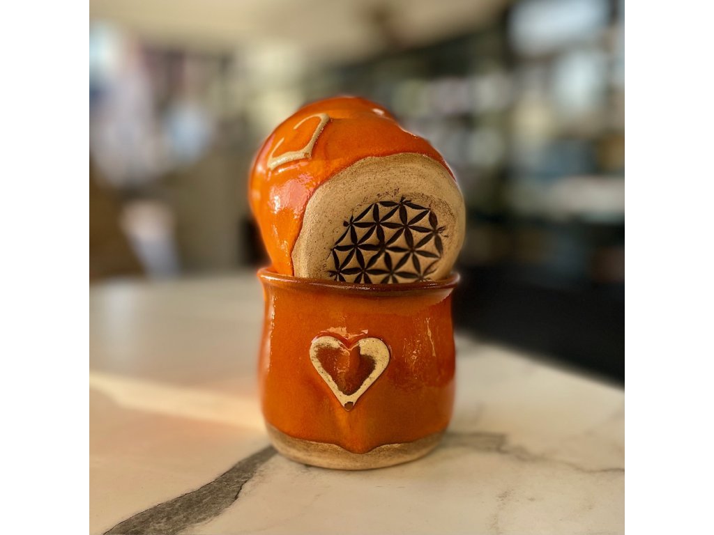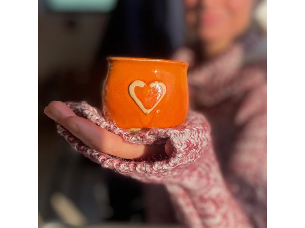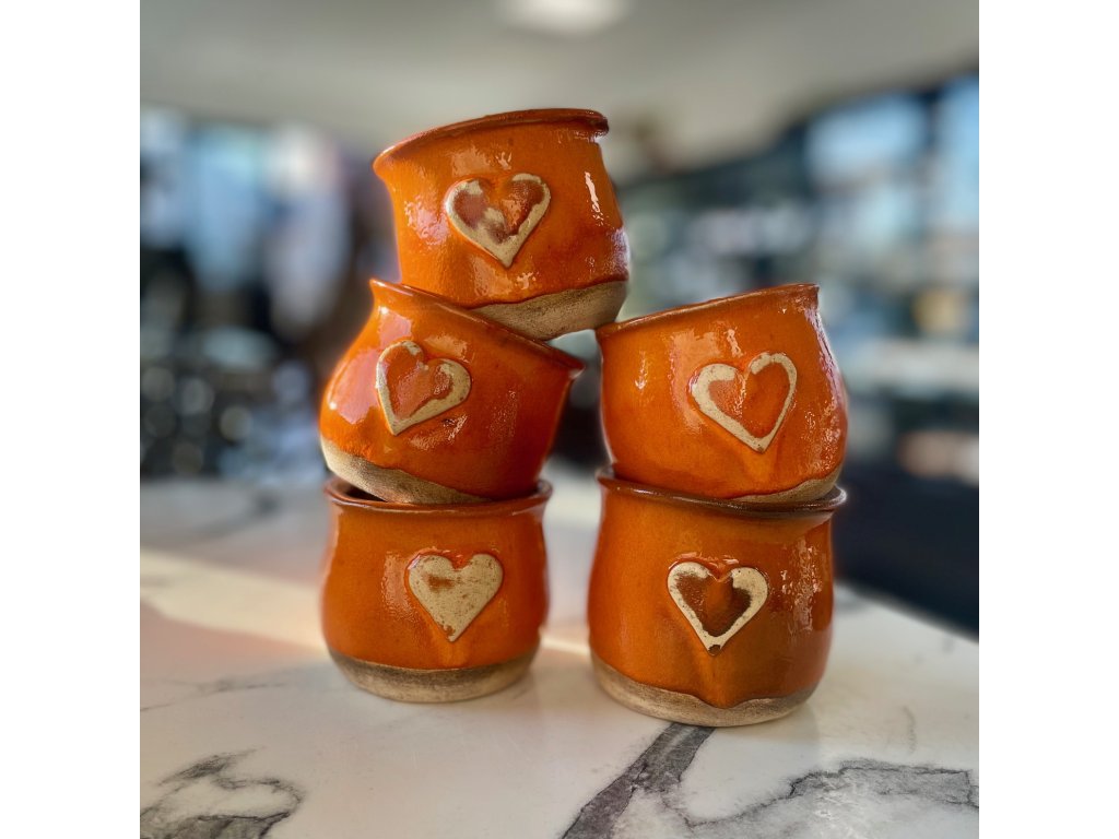 Ručně modelovaný keramický hrnek bez ouška je ručně modelovaný z točířské hlíny. Na hrnek byla použita glazúra na užitkové účely. Obsah hrnku je cca 180-200ml. Cena je za jeden hrnek.