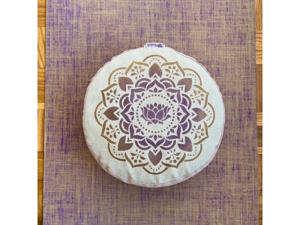 Bhaktik meditační podsedák s ručním potiskem. Meditační podsedák je určen k meditaci nebo na sezení v tureckém sedu, kde vylepšuje a podporuje polohu zad a boků. Je plněn pohankovými slupkami a má poutko pro nošení v ruce. Vnější polštář má zip, což umožňuje snadné svlékání a praní polštáře. Vnitřní polštář u vysokých polštářů se uzavírá suchým zipem, což umožňuje odebírání a doplňování pohankových slupek. Vnitřní materiál 100% bavlna, vnější obal 90% bavlna a 10% polyester. Prát na 30 stupňů, rubní stranou nahoru. Rozměr vysokého polštáře 35 x 15cm, hmotnost cca 2.5kg. Rozměr nízkého polštáře 35 x 10cm, hmotnost cca 1.5kg.
